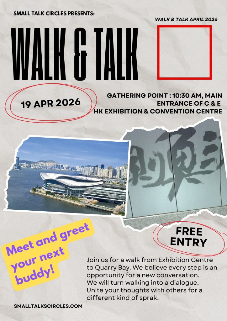 Join us for a walk from Exhibition Centre to Quarry Bay. We believe every step is an opportunity for a new conversation. We will turn walking into a dialogue. Unite your thoughts with others for a different kind of sprak!